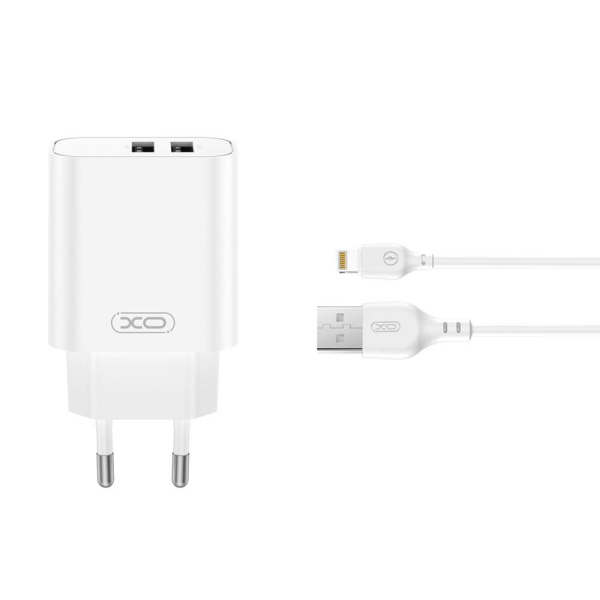 XO TRAVEL CHARGER CE34 2.4A 2 PORTS USB + DATA CABLE LIGHTNING